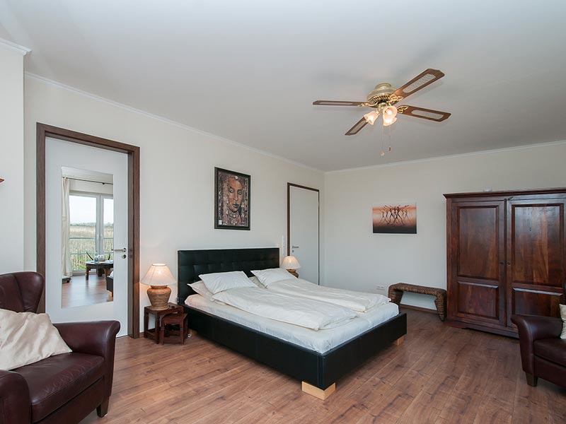 Der ruhige Schlafbereich für zwei Personen befindet sich im hinteren, etwas zurückgezogenen Teil des Hauses. Hier genießen Sie eine entspannte Atmosphäre und erholsame Nächte während Ihres Aufenthalts im Jagdhaus im Alten Land.